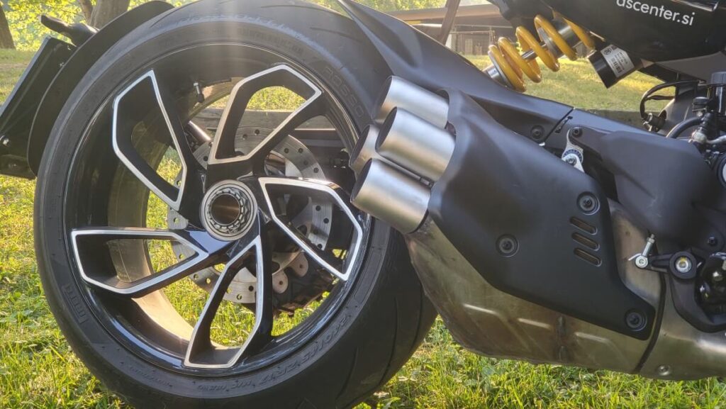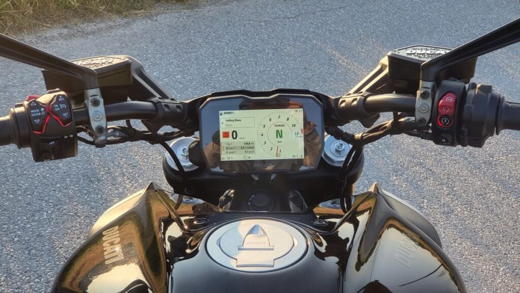 Ne morem kaj, da ne bi komentiral zvoka, kajti zelo opazen je preskok iz nizkih hitrosti pešca v višje. Težko ga opišem, a ko prestaviš nazaj v prvo prestavo, se zdi, da se preklopijo tudi lopute in Diavel zadobi zelo specifičen zvok. Ko se hitrosti in vrtljaji dvignejo, zvok pod čelado začne spominjati na letalske turbinske motorje. Mislim, da zvok zelo lepo podčrtava in izraža različne karakterje motocikle.