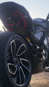 Ne morem kaj, da ne bi komentiral zvoka, kajti zelo opazen je preskok iz nizkih hitrosti pešca v višje. Težko ga opišem, a ko prestaviš nazaj v prvo prestavo, se zdi, da se preklopijo tudi lopute in Diavel zadobi zelo specifičen zvok. Ko se hitrosti in vrtljaji dvignejo, zvok pod čelado začne spominjati na letalske turbinske motorje. Mislim, da zvok zelo lepo podčrtava in izraža različne karakterje motocikle.