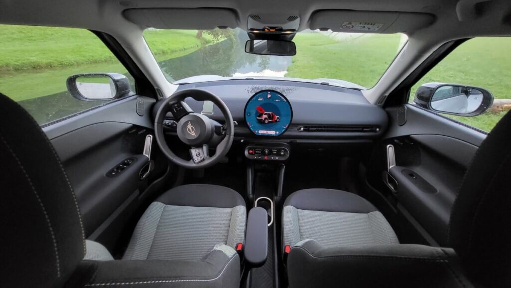 V notranjosti se občutek nadaljuje, oblikovno je vse na mestu, od okroglega zaslona, volana mali detajlčkov in kvalitetne trde plastike, a MINI občutka ni. Po mojem mnenju je bistven element, ki to zagotavlja, pokončno vetrobransko steklo…to pa tu manjka. Tudi visoko sedenje pripomore k temu. A je zato prostora na zadnjih sedežih in v prtljažniku obilo. Testni avtomobil je bil opremljen v povsem črni notranjosti, kar je v pomanjkanju »zunanjih« dražljajev, v obliki motorja, fokusa, spuščene strehe….delovalo na moč dolgočasno. Ko boste naročali svojega, dopustite si barve, kajti Aceman je usmerjen na bivalno udobje, veselje do življenja in zato mu črna res ne pristoji.
