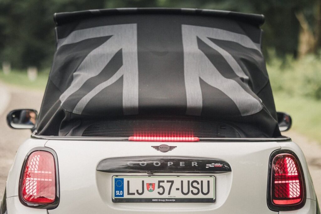 Priznam, angleški občutek me je malo zanesel, Cooper J Works Cabrio je poln malih in velikih detajlov, ki oglašujejo njegovo angleško poreklo. Pri tem mi je streha z ne-izstopajoče naslikano zastavo še posebej všeč. Zato sem s seboj vedno vozil dve poslikani skodelici iz porcelana in v termovki čaj, Črni, Earl Grey. Po tem ko ga huligansko ženeš po zavitih cestah, se namreč spodobi na kakšnem razglednem vrhu preleviti v gospoda, odpreti prtljažna vrata v stilu poltovarnjakov, natočiti skodelico čaja in uživati v razgledu. Prtljažna vrata kvarijo romantični moment z preprostim dejstvom, da je njih nosilnost komaj ena odrasla oseba. Zatorej bo treba poleg čaja v avtu imeti tudi odejo, na kateri boste svojemu sopotniku ali sopotnici lahko z njim postregli…..konec koncev je Mini Cooper J Works Cabrio namenjen užitkom v dvoje.