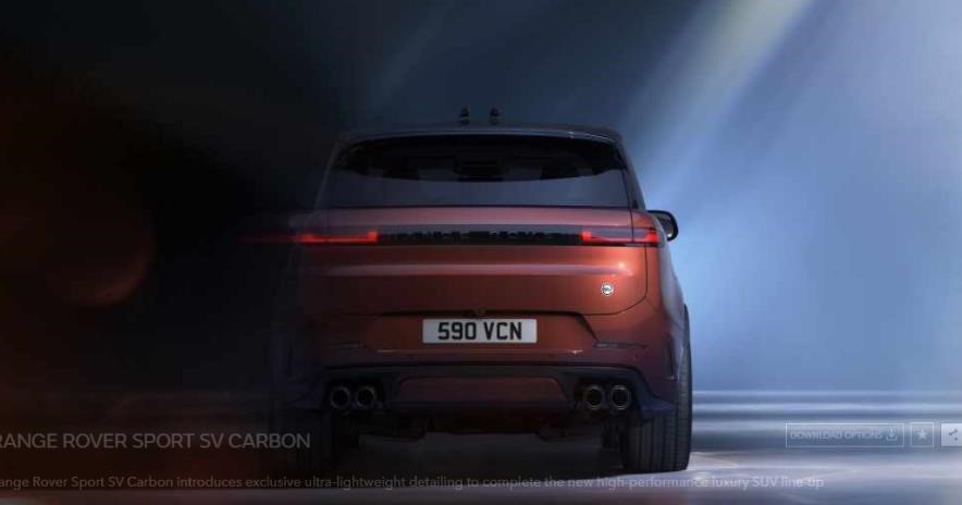 Novi Range Rover Sport SV Carbon predstavlja samozavestno interpretacijo sodobnega luksuznega in visokozmogljivega avtomobila ter tako dopolnjuje vrh ponudbe te znamke skupaj z modeloma SV in SV Black. Prepoznavni poudarki iz kovanih karbonskih vlaken, izpostavljeni pokrov motorja iz “Twill” karbona in možnost 23-palčnih karbonskih platišč poudarjajo lahko težo in fokus oblikovanja. V notranjosti kokpitu podobna kabina vključuje športno školjkaste sedeže z integriranimi naslonjali za glavo, izrazitimi bočnimi oporami in osvetljenimi logotipi SV. Oblikovno je kabina dopolnjena z možnostjo izbire štirih notranjih tem in personalizirano storitvijo SV. Poganja ga seveda 635 Twin Turbo V8 blago-hibridni motor z 635 KM, ki elegantno združuje osupljive zmogljivosti s podrobnimi detajli, ter tako postavlja nov standard za luksuzne visokozmogljive SUV-e.