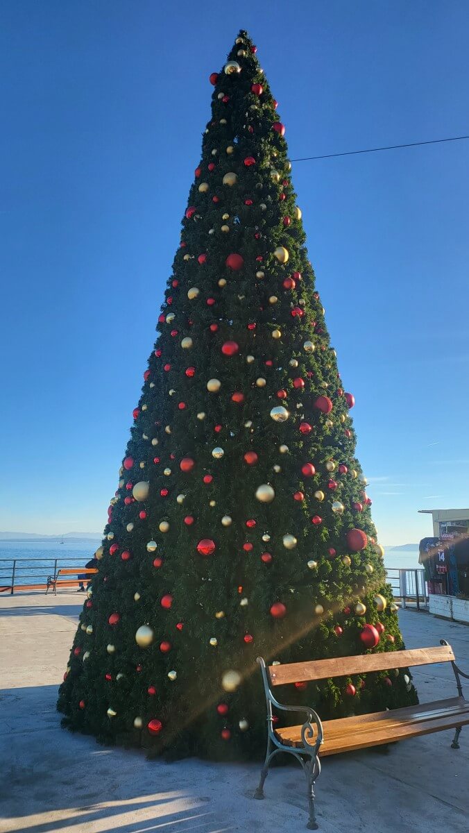 Iz prtljažnika sva potegnila stolčka, mali gorilniček in kmalu se je iz čajnika začela sukljati para in dišati po božični mešanici cimeta in jabolk. Da sva pozabila na smrekico? Nisva, prinesla sva jo namreč kar s seboj, v prtljažniku. Tako majhno, da bi lahko služila kot dekoracija v avtu, a dovolj velika, da je nanjo šlo par simboličnih okraskov. Lonček s čajem je grel roke, naslonjena nazaj v ležalnikih sva ga počasi srkala in uživala v bratskih pogovorih v najlepšem ozadju.